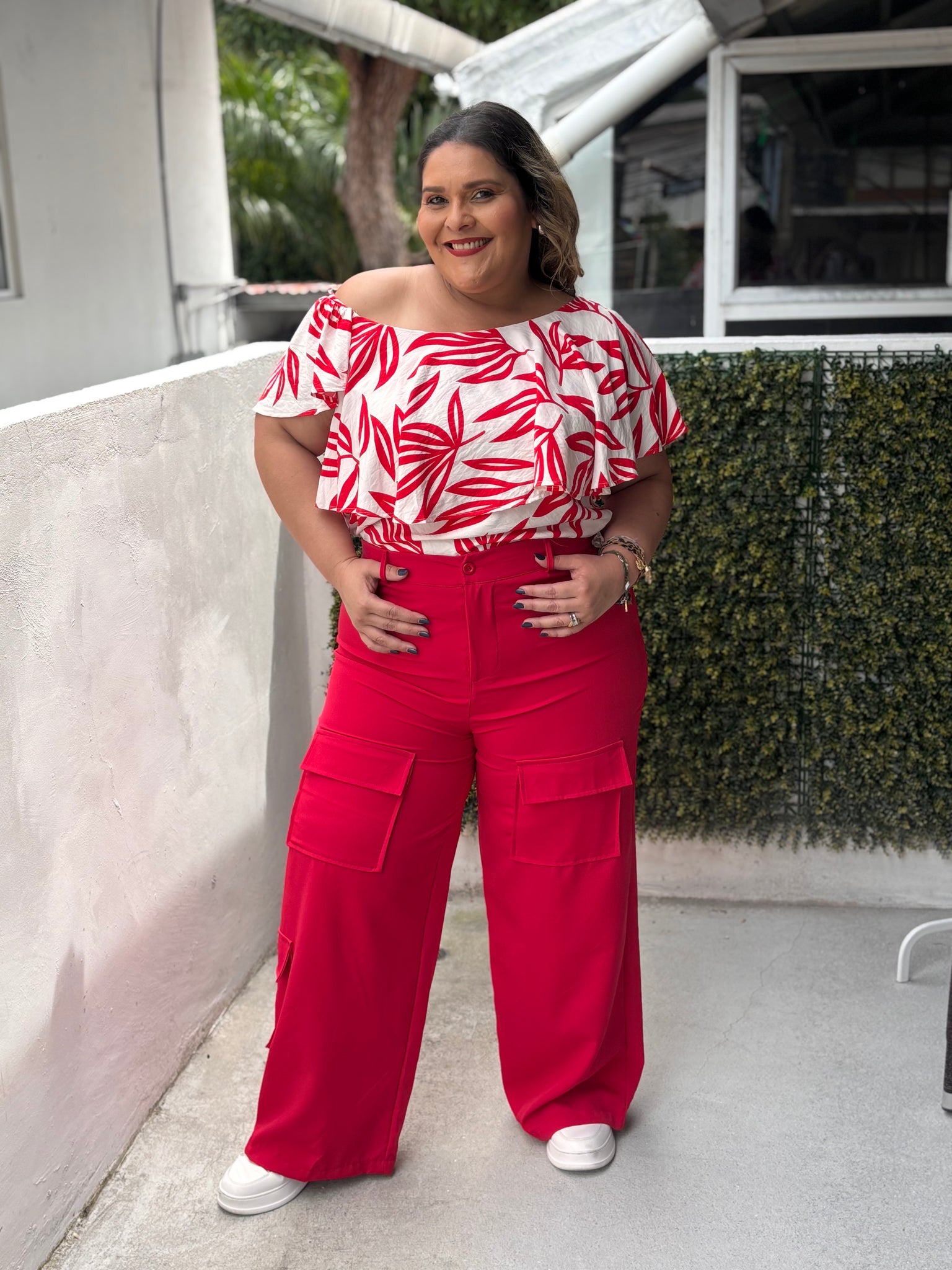 BLUSA OFF SHOULDER CON ESTAMPADO FORAL ROJO