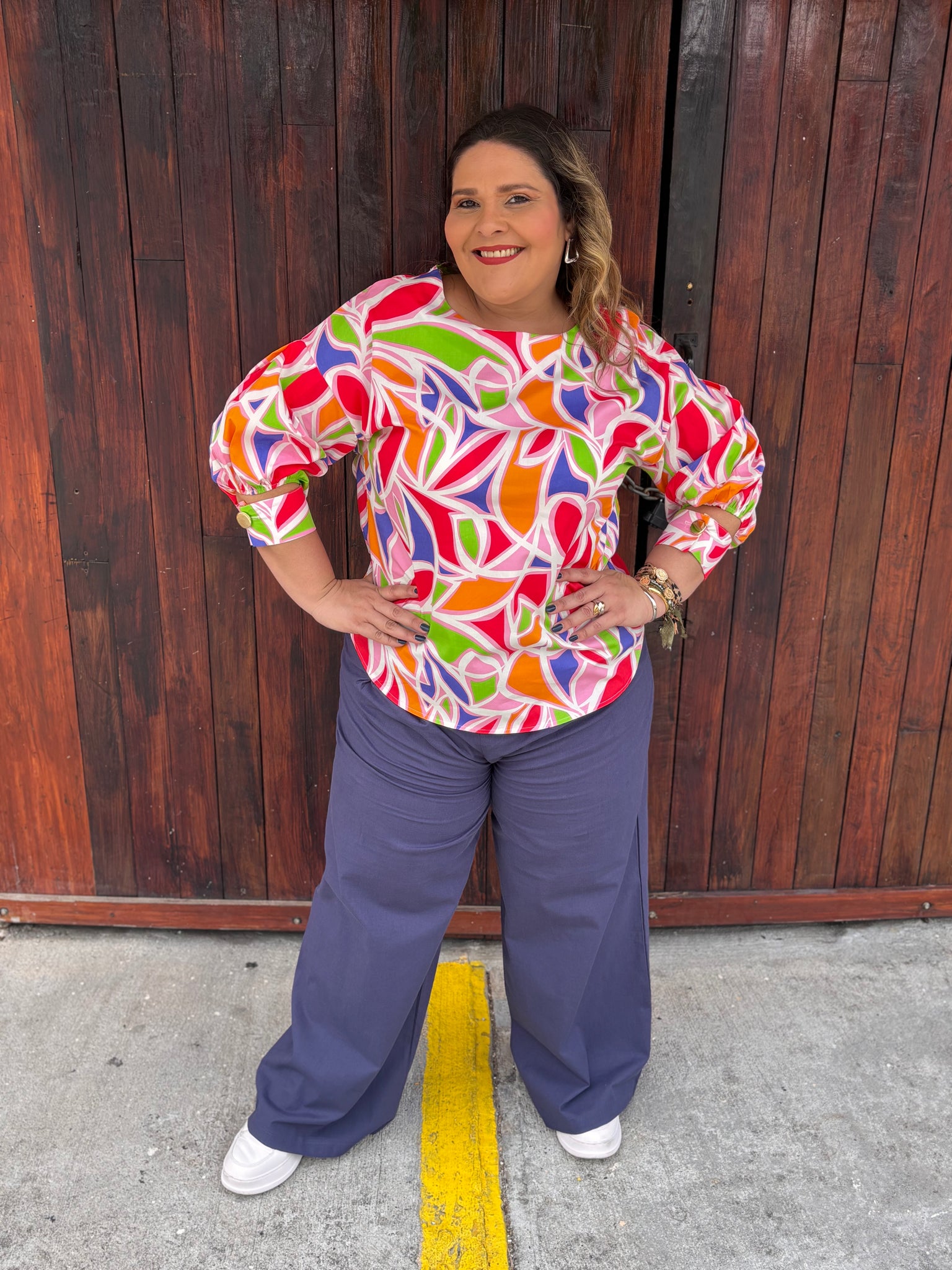 BLUSA DE ALGODON CON MANGAS 3/4 ESTILO BURBUJA