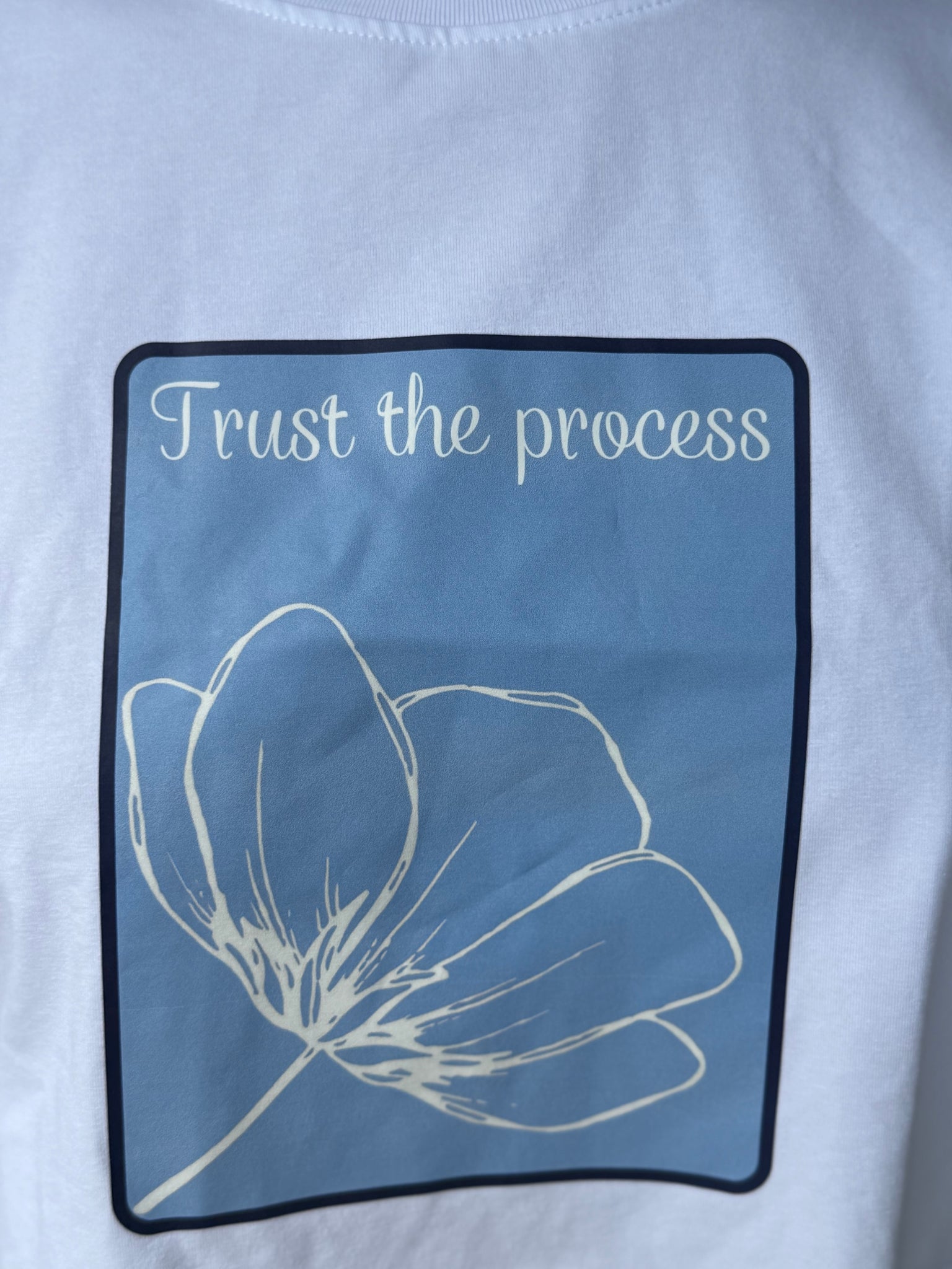 Sweater blanco con estampado azul.